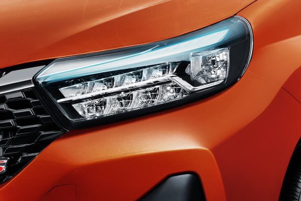 Berkendara nyaman dengan sandaran kepala di baris pertama dan kedua yang dapat disesuaikan serta jok kursi dengan aksen orange stitch yang memberi kesan sporty dalam interior. Sporty Meter Cluster with RS Logo.
